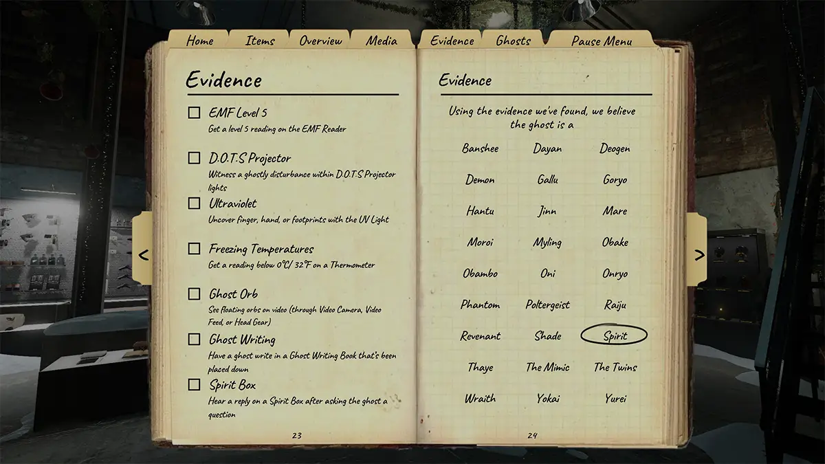 Image: New Evidence Layout in Phasmophobia Journal | Kinetic Games